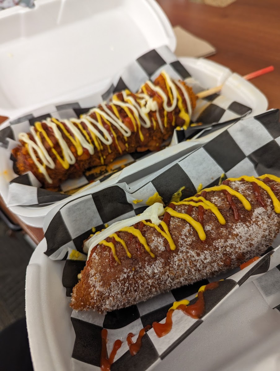 I loved this place. I was skeptical about Korean corn dogs but I tried the OG and it was fantastic. A lot of enjoyment for the price and I find myself wanting to go back often. The staff were also very kind and relaxed, and they had games inside! I recommend this place HARD.