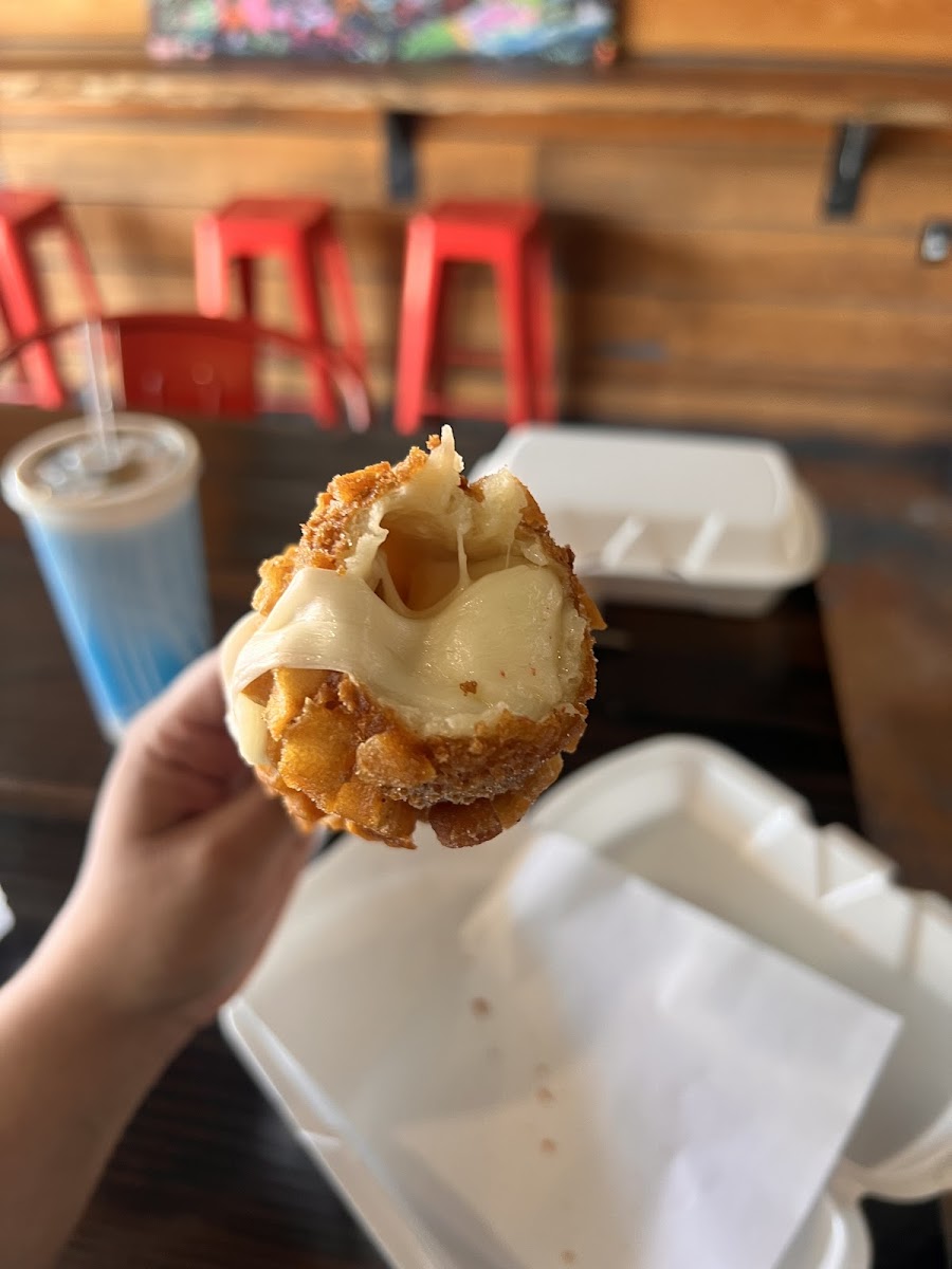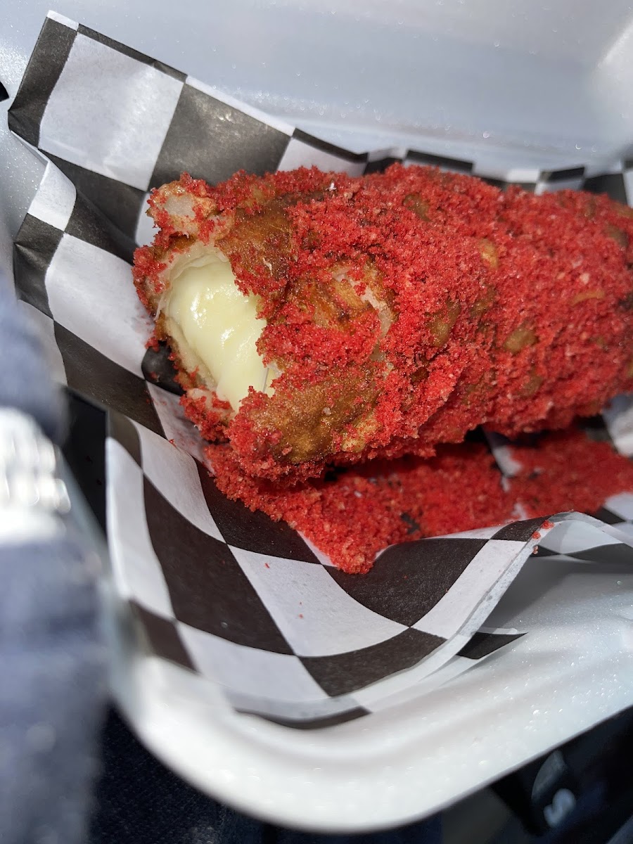 Very cool little place. It's easy to miss if ur not looking but definitely a gem. I got the OG no mustard. I love mustard, but I thought it would overpower the cheese and breading. The flavor of the cheese was very, very good. Crunchy, hot, and made to order. Lovely experience, got to eat and watch chicken little.